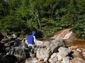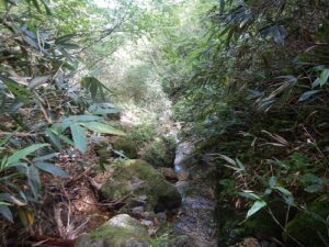 休憩を終了しここから沢沿いに下る。カラダが疲れているのか下りで転びそうになることが多かった。