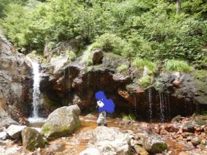 7:35にホラ貝沢出合いに到着。ここからが本番で滝が連続してでてくるので気を引き締めて進む。