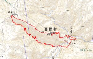 甲子温泉 大黒屋(8:00)→阿武隈側本流(8:27)→南沢出合(8:29)→F1 8m滝(8:35)→F9 30m滝(11:47)→甲子山山頂(14:22)→大黒屋(16:02)