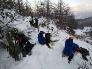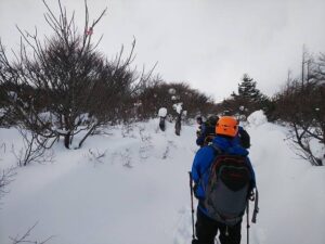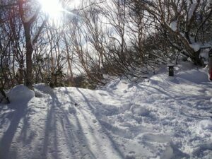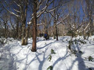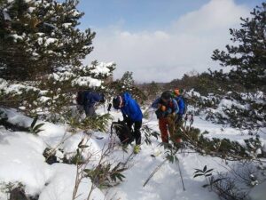 この日はスキー場の人と協議の結果、くろがね小屋方面の旧道から進むことになった。