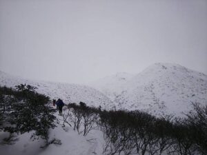 スキー場(8:47)→八の字(10:04)→峰ノ辻付近(11:45)→本山山頂直下(13:16)→スキー場(16:00)